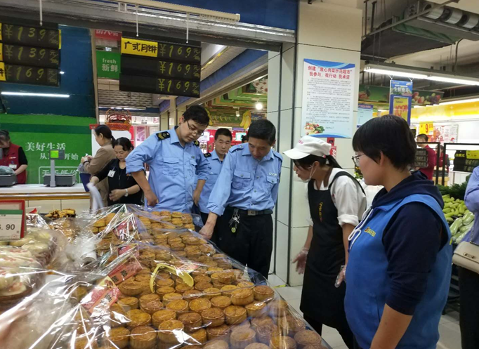 本次检查主要以市场上的15种热销品牌月饼为主,如稻香村、心语轩、新特软、老苗、乐琪中冠、德怡轩、安琪、富锦等品牌。主要检查了月饼供货商资质,索证索票,产品生产日期和保质期标识、检验合格证明、经营生产环境是否达到要求、是否具备三方措施、销售人员健康证明、产品是否出现霉腐变质等情况。针对于部分散装月饼经营时无三防措施,未标注生产日期,保质期等情况进行了现场整改。对未能提供供货方资质,产品证票,检验合格证明的经营单位现场下达了责令整改,限期将问题整改到位,并继续对问题经销户进行了定期检查,复查后仍无法提供票证的全部下架封存,确保月饼市场的经营秩序和食用安全。