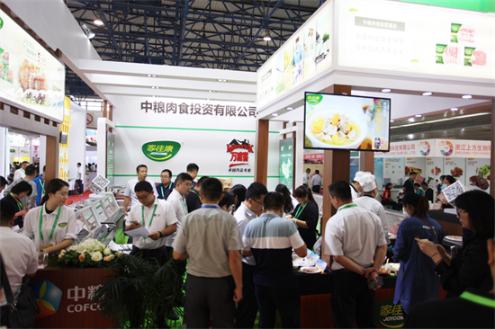 中粮肉食此次主要展示核心品牌“家佳康”生鲜猪肉、低温制品、禽肉制品、牛排、休闲零食和“万威客”低温制品,共计6大类、百余个单品。