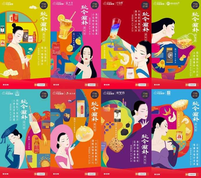 滋补养生是个庞大的领域,消费升级环境下,如何与目标消费者就这个传统命题进行有效沟通?阿里健康对年轻人们的生活习惯进行深刻洞察,针对养生需求场景差异,精选七个滋补品牌,推出七道步骤简单的创新滋补料理,区别于传统汤药式养生,以全新的新潮国风风格与消费者沟通,打造新式养生消费体验。