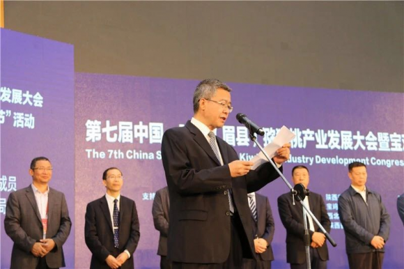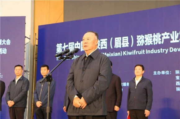 开幕式由陕西省人民政府副秘书长兰建文主持,宝鸡市人民政府市长惠进才致辞;陕西省农业厅党组成员、省果业管理局局长高武斌介绍了陕西猕猴桃产业发展情况;宝鸡市人民政府副市长高建华介绍了宝鸡市庆祝首届“中国农民丰收节”活动安排情况;中国园艺学会猕猴桃分会理事长、中国科学院武汉植物园研究员钟彩虹讲述了猕猴桃分会发展情况及陕西眉县猕猴桃的品质和资源优势;陕西省政协副主席王二虎,中国绿色食品发展中心办公室副主任时松凯,陕西省教育厅副巡视员韩忠诚分别向眉县授予“全国平安农机示范县”“全国绿色食品原料(猕猴桃)标准化生产基地”“国家级农村职业教育和成人教育示范县”匾牌;陕西省政协副主席祝列克作了讲话。最后,第十一届全国政协副主席白立忱宣布了第七届中国·陕西(眉县)猕猴桃产业发展大会开幕。