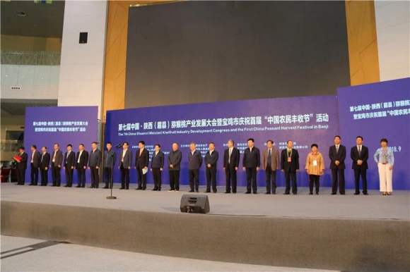 在这丰收的季节,9月20日,“中国猕猴桃之乡”眉县国家级猕猴桃批发市场彩旗飘扬,锣鼓喧天,一派喜庆祥和。第七届中国·陕西(眉县)猕猴桃产业发展大会暨宝鸡市庆祝首届“中国农民丰收节”活动在这里隆重举行。