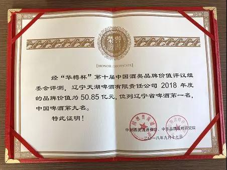 此次会议天湖啤酒品牌价值再次升级,以50.85亿元的品牌价值位列辽宁省啤酒品牌价值第一位,东北啤酒品牌价值第二位,中国啤酒品牌价值第九位,被授予“2018年度中国十大最具营销潜力啤酒品牌”、“2018年度中国十大高端品质啤酒品牌”等荣誉称号。