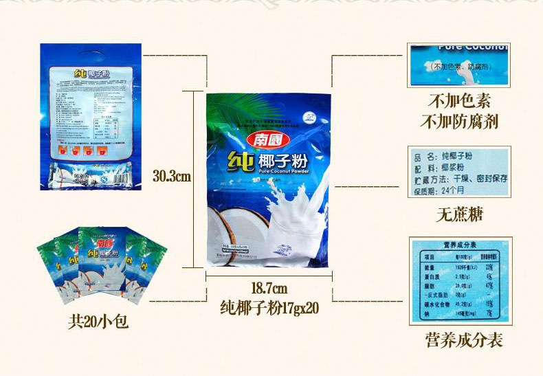 因为纯椰子粉的营养丰富,也使其在营养品市场中占据一席之位,南国纯椰子粉富含植物蛋白营养和人体所需的16种氨基酸营养,对人体的身体调理和体质改善方面,都具备显著的作用,纯椰子粉也因此被称为“天然营养品”!