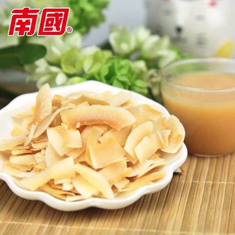 南国26年的发展,除了推出经典款的纯椰子粉,还匠心制造了许多具备海南特色风味的美食,比如香脆椰子片是全网销售第一的休闲零食,其是用海南新鲜老椰肉切片烘干而成,椰香浓郁不腻口。