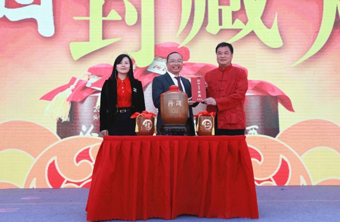 本次竞买环节还邀请到了去年封藏大典30年头锅原浆汾酒的竞得者新华都购物广场股份有限公司董事长金志国先生莅临现场,与华泽集团董事长吴向东先生的代表一起担任助拍嘉宾,金志国先生在讲话中对头锅原浆汾酒赞不绝口:“一年升值50%,这酒买的太值了!”。