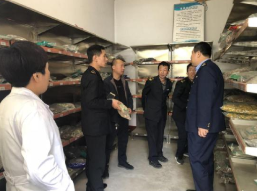 (图为丰州站执法人员在县城中医院中药库房进行检查)