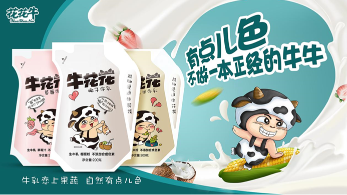 牛花花风味调制乳是一款主打年轻市场的风味调制乳,天然健康迎合年轻消费者口感。在产品包装设计中,牛花花首次融入了全新的IP形象“牛花花”,天生逗趣, 自带皮、贱、撩的属性,助攻每一个消费者成为“段子手”。牛花花产品从包装到内容拥有当下95后社交圈层鲜明的特性,与95后不拘一格,自我的天性不谋而合。目前,牛花花风味牛乳已经在全国陆续铺货上市。