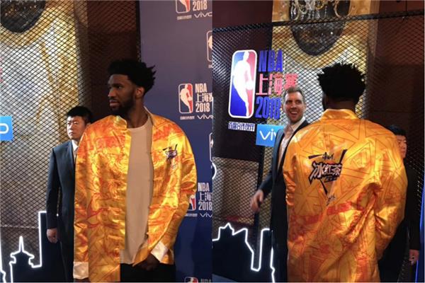 不知道是不是在中国赛前一天晚上,恩比德出席欢迎晚宴时身着的一袭唐装康师傅冰红茶特意为他定制的唐装为他带来的好运。