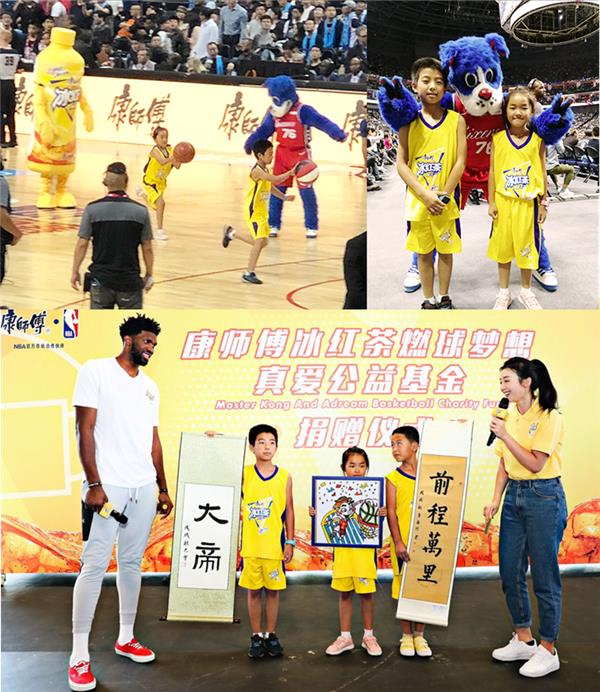 在NBA中国赛的几天里,康师傅冰红茶将“燃球梦想 燃痛快”贯穿到了每一个环节中。NBA球星恩比德不仅是康师傅冰红茶的代言人,还化身“燃球梦想公益大使”,为小朋友讲述自己的燃球梦想故事,还和他们来了一场专业篮球教学指导,鼓励他们追求梦想、不要放弃!