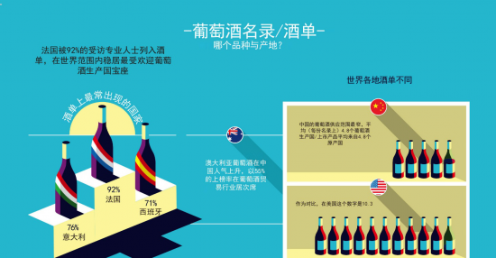 - 用颜色区分葡萄品种和葡萄酒产区动态;
