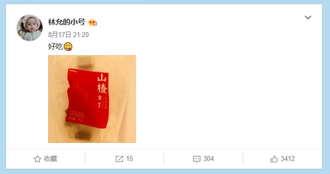 据了解,林允对味BACK家的山楂方十分喜爱,早在今年七夕,林允曾在自己的微博的个人小号上,和粉丝安利这款味BACK山楂方,由此引发一次抢购热潮,粉丝纷纷在淘宝上查找同款山楂方,由于山楂方的鲜艳包装,淘宝的智能识别将其误认成是内裤,在粉丝中间还闹出了不少笑话。