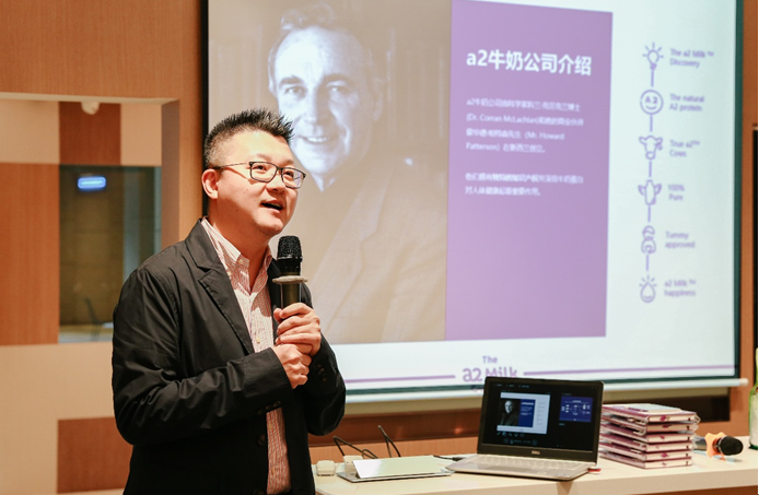 (a2™牛奶公司中国市场部副总裁鲁申先生为此次活动致辞)