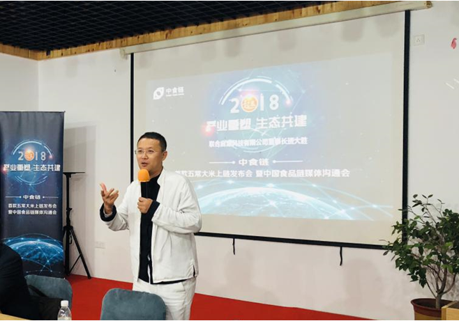 随后,起浪稻米创始人班大胜介绍到,五常市水稻种植面积220万亩,年产五常大米总量仅105万吨左右。但数据显示全国五常大米的年销售量却超过1000万吨,可想而知,市面上仅10%左右的“五常大米”才是正宗的“五常大米”。起浪有机稻米采用鸭稻共生的生物除草技术,小鸭除草摒弃传统除草剂的农药残留和大量人工除草的麻烦,同时施用有机肥、自制发酵豆饼肥等摒弃了传统化肥,无化肥农药残留,真正实现了从生产到加工全程有机作业,因此起浪稻米是五常大米中的翘楚。他提到,传统农业需要搭乘区块链技术才能实现品牌化、国际化。好的产品要让更多的消费者认可,此次起浪有机稻米选择与中食链合作,将大大提升起浪品牌价值。