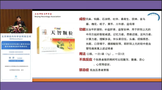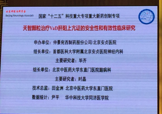会上,北京神经内科学会会长、北京安贞医院神经内科主任毕齐教授,以《科技部重大新药创制项目——天智颗粒治疗血管性认知功能障碍研究结果》为题,发布了天智颗粒上市后四期临床试验研究结果的初步数据。