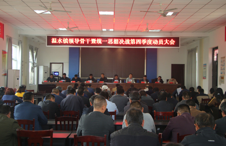 近日,温水镇召开全镇领导骨干暨统一思想决战第四季度动员大会,镇全体班子成员、全体职工、部分垂直部门负责人、各村居支部书记、主任参加会议。
