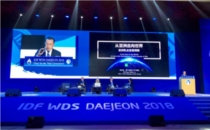 (图:卢敏放作为中国企业家代表出席2018年IDF世界乳业峰会)