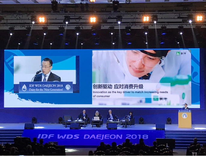 (图:卢敏放在IDF世界乳业峰会上发表主题演讲)
