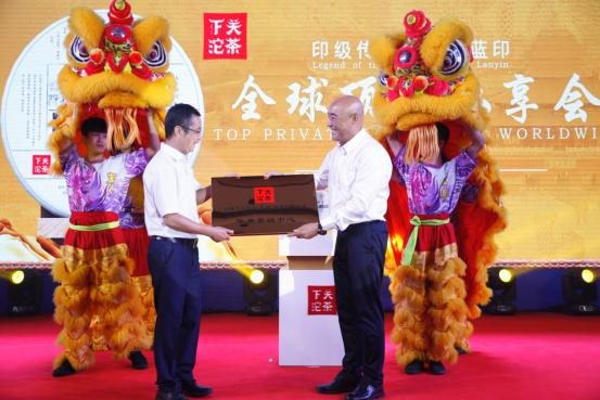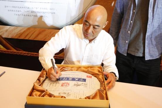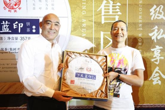 此外,3.57千克下关蓝印饼茶也在广州亮相,礼盒包装高雅华贵。陈国风董事长为购买纪念饼茶嘉宾签名并合影留念。