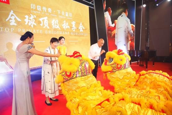357克下关蓝印饼茶揭幕仪式备受瞩目,产品隆重亮相。陈国风董事长与广东省茶叶行业协会秘书长张黎明女士上台为舞狮点睛,舞狮助兴下,下关蓝印饼茶闪耀登场。