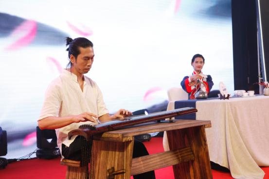 广东古琴研究会常务理事李德荣老师与沱之源茶艺师携手带来《印级传奇·下关蓝印》茶艺表演,古琴悠悠,茶香怡人。茶艺师式式龙行云动,招招紧驰浪奔,《流水》、《普庵咒》两首演奏曲,悠长动听,富有别具一格的神韵之美。在粤语解说的烘托下,参会嘉宾身临其境感受岭南文化的独特魅力