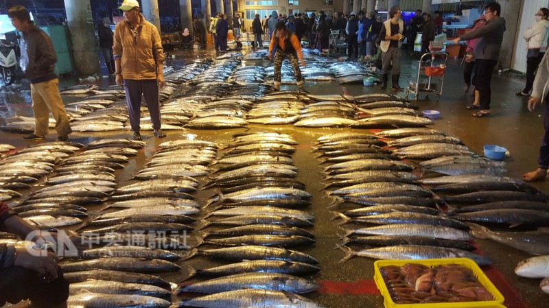 马公第三渔港鱼市场25日早上可看到一批批的渔获,每公斤从新台币450元至700元之间都有,数量少见的白腹鱼,民众争相抢购。中央社107年10月25日