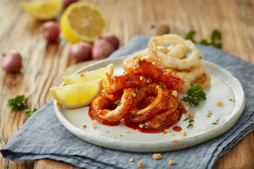 金黄色的炸衣包裹着鲜嫩弹牙的鱿鱼和香甜洋葱圈,这道经典韩式小食中辣酱的甜辣完美激发了味蕾,休闲时做一份,绝对令人食指大动,停不下来!
