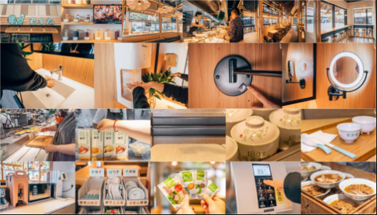 还多增设了自助台。给你配备了碗筷,各种调料包,还有开水大麦茶,连微波炉都有,这下想要什么自己就可以取到。