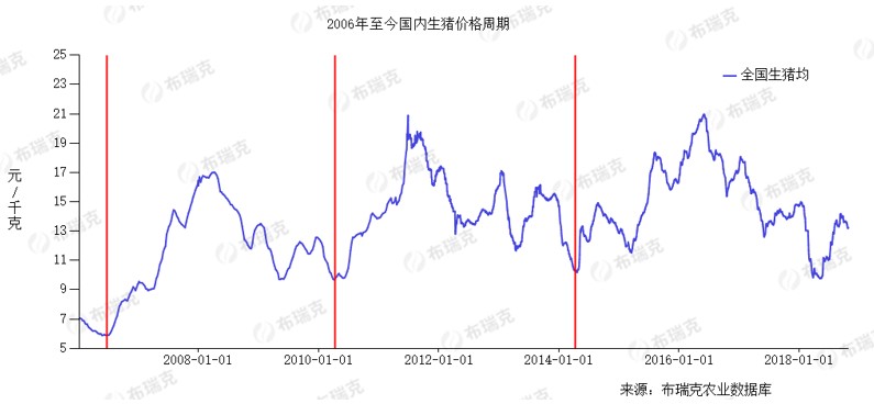 自2006年至今,国内市场生猪价格已经历了两轮完整的猪周期,一轮完整的猪周期运行长度为4年左右。