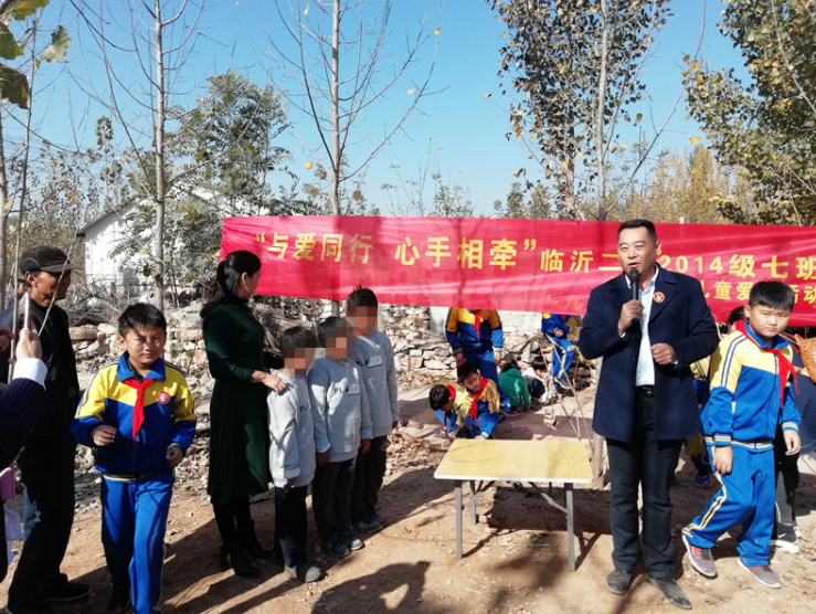 10月28日,临沂市二小2014级7班师生及学生家长50余人联合平邑手牵手圆梦行动团温水分团、温水镇妇联到温水镇前南林村开展“与爱同行,心手相牵”—关爱孤贫儿童、爱心捐赠活动。