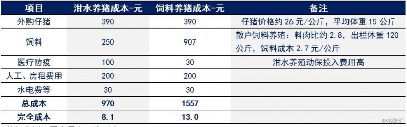 这背后的原因就在于,“泔水猪”养殖成本远低于饲料猪。