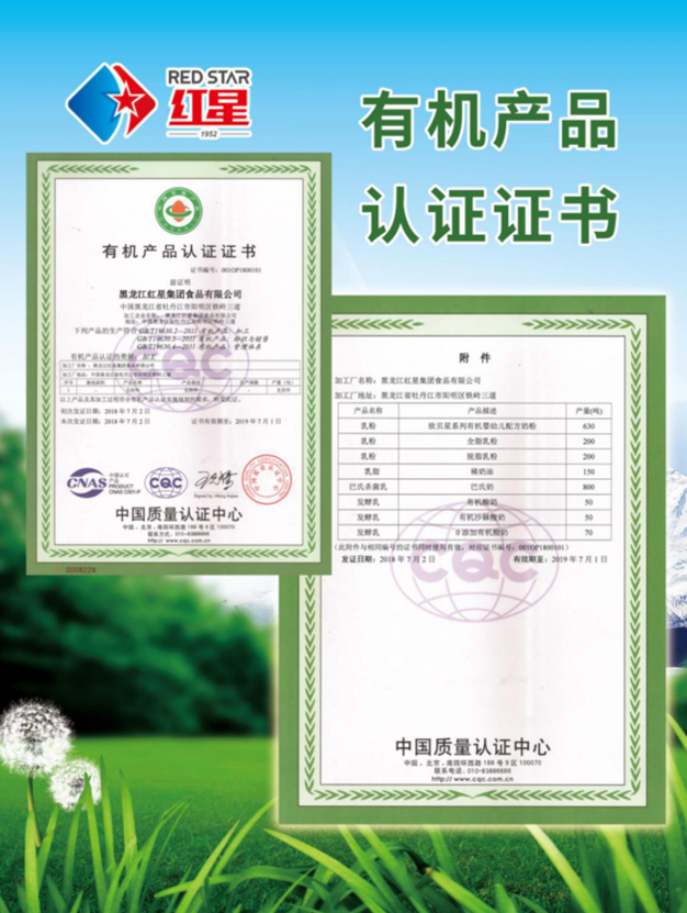 2015年10月13日红星通过了德国莱茵TüV集团公司质量管理体系认证。标志着红星启冠奶粉生产管理达到了欧盟标准世界水平。