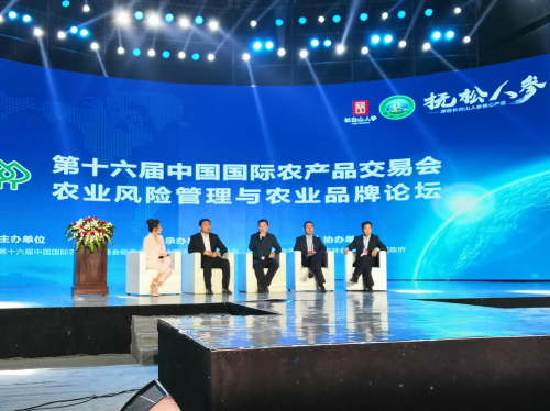 最后,吉林省参茸办公室主任孙振天,陕西省洛川县人民政府副县长刘高明,大连商品交易所产业拓展部总监蒋巍及郑州商品交易所农产品部总监冷冰四位代表,围绕农业风险管理与农业品牌打造主题进行对话分享。与会代表一致认为,农业品牌建设与农业风险管理相辅相成,农业品牌建设本身就是化解农业风险的有效手段,抚松人参、洛川苹果等品牌也在这方面做了有效实践。