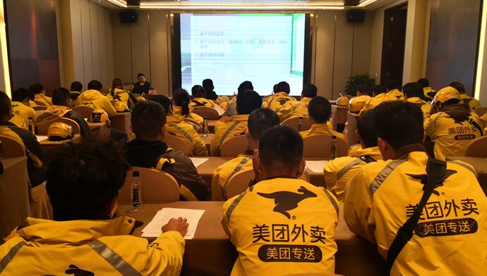 自成立以来,美团外卖就已经将骑手的食品安全知识培训纳入到日常工作中,对全国各城市的美团外卖骑手开展食品安全培训活动,让骑手们学习网络平台订餐、外卖送餐相关法律法规,深入地了解到自身的责任和义务,从而使骑手在配送工作中自觉保证食品安全,确保外卖食品安全、快速的送达消费者手中。