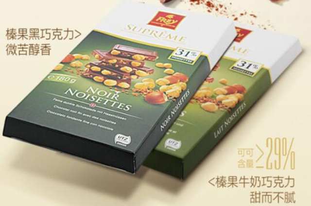 Frey巧克力源自瑞士,诞生于1887年,距今已有131年的历史,在全球有着非常良好的口碑。作为瑞士最大的巧克力制造商,Frey巧克力稳占瑞士巧克力销量冠军,并获得了多项大奖,在国际市场上也有着较大高的份额。而最令瑞士人骄傲的就是,Frey巧克力是百分百瑞士制造,在所有的制造过程中,由豆到巧克力的制成品是全部在瑞士进行。Frey巧克力口味众多,而旗下最受欢迎的就是榛果黑巧克力与榛果牛奶巧克力两款产品。