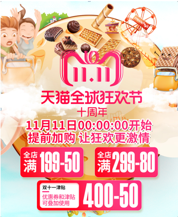 作为今年天猫双十一全球狂欢节的旗舰品牌,来自马来西亚的国宝级饼干零食品牌——马奇新新就是满减力度最大,对消费者最具诚意的品牌之一。满199减50元,满299减80元,如此实实在在的优惠,就如马奇新新品牌一如既往倡导的理念一样,分享快乐,给消费者带来阖家团圆的美味享受。