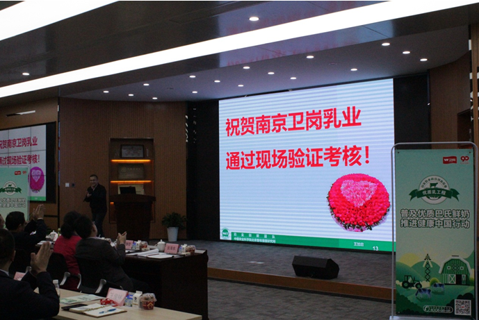 中国农业科学院成果转化局副局长冯艳秋女士宣布卫岗乳业通过国家优质乳工程现场验证考核,并表达对结果的满意和欣慰。