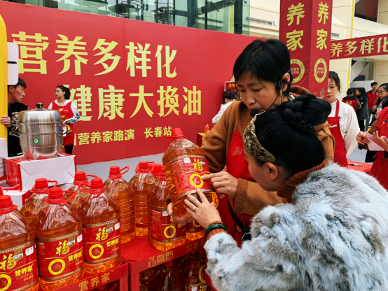 记者在长春站活动现场看到,前来参加活动的市民络绎不绝。在售卖区消费者可凭借任意品牌食用油桶抵现购买福临门营养家食用植物调和油,厨演区香气四溢,游戏互动区趣味横生,舞台表演丰富多彩,消费者通过各种形式体验并了解了健康用油知识。前来参加活动的吴女士向记者表示:“营养家调和油的配方和比例都公开了,里面的成分一目了然,不光吃的健康,而且吃的有数。”