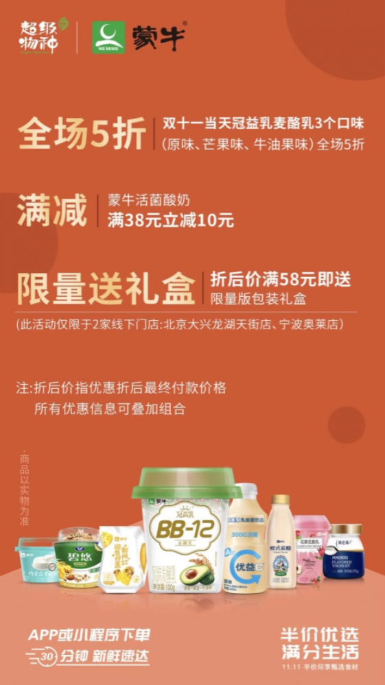 作为新零售业态的标杆,超级物种一直主打生鲜餐饮+高端商品超市,提供新鲜、安全、高性价比的全球优质食材。这与蒙牛有格青年健康、品质的品牌理念不谋而合。同时,超级物种拥有强大客流聚集量,无疑拥有更强的吸引力。两者携手可谓一场强强合作,让本次双十一活动迸发出1+1>2的喜人态势!