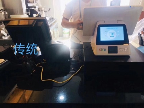 左:传统收银机外接设备 右:客如云智能收银机 一机多能
