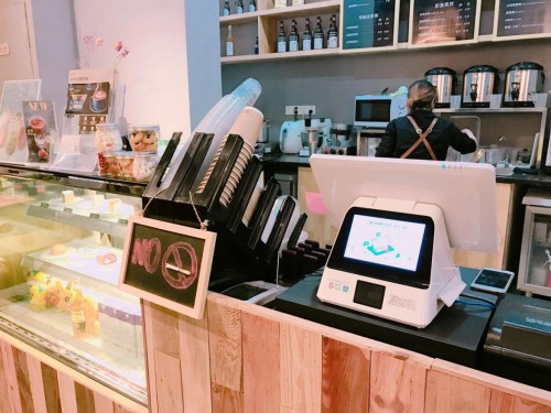 赛我咖啡前台使用的客如云onPOS SE智能收银机
