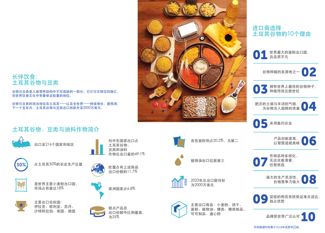谷物与豆类的突出地位在土耳其——以及全世界——持续增长;据预测,下一个五年内,土耳其谷物与豆类出口将跃升至2000万美元。