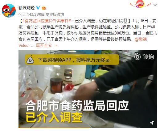 对于视频中涉及劣质调料包通过外卖渠道销售的情况,16日下午,网餐平台饿了么发布声明,已经对发现有使用该品牌产品的商家已全部下线,并在第一时间主动向食药监部门报告,将全力配合相关后续调查。