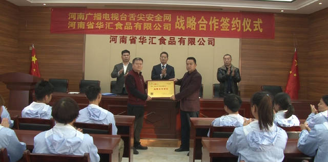 张国运总编辑与林建华董事长共同签署了《舌尖安全网·河南省华汇有限公司战略合作协议》。李天宇副总编辑向总经理刘广伟颁发了“战略合作单位”匾牌。