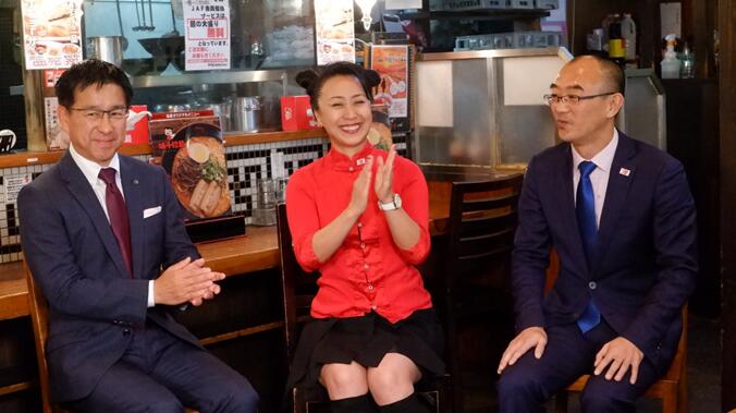 面的故乡——熊本,记者一行人也见到了千酱妹妹的“本尊”,原来50年前味千拉面创始人以自己女儿的形象设计了味千最初的品牌logo,“小时候经常看父亲在厨房熬汤煮面,超爱那碗鲜香的汤。在创立味千拉面的时候,父亲想将我们的幸福骨汤和所有人分享,并希望所有人都像我一样爱上这碗骨汤拉面。”现任重光产业株式会社副社长重光悦枝说到。