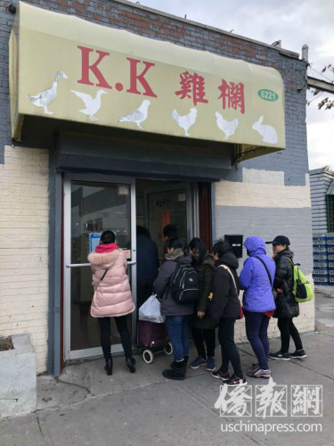 鸡鸭代火鸡,感恩节前夕八大道鸡栏生意火爆。(美国《侨报》/高诗云 摄)