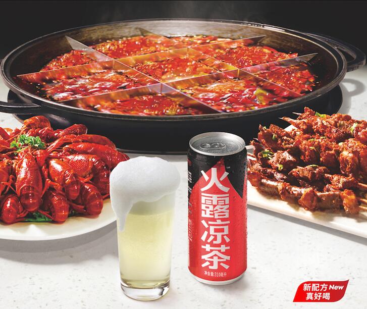 火露凉茶的生产厂商,正是凉露酒业,凉露酒业之前在2018春季糖酒会推出一款吃辣喝的酒——凉露,经过近半年的运营推广,凉露酒深受消费者喜爱,快速成为消费者餐桌上的必备饮品。之后又在秋季糖酒会推出凉露的兄弟产品——火露凉茶,继续围绕“食辣”场景开展大围剿。