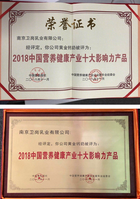 11月20日,以“赋能 · 创新 · 引领”为主题的2018中国营养健康产业企业家年会暨年度颁奖盛典在京开幕。促进人体钙吸收的卫岗黄金钙奶由于强力锁钙防流失,推动全民健康升级,从而斩获“2018中国营养健康产业十大影响力产品“ 。