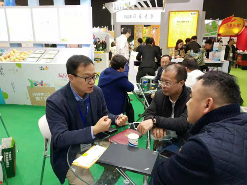 在展会现场,天下星农创始人兼CEO胡海卿与农业行业、果业渠道商各路大神热聊不断。