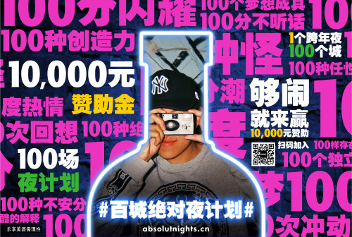 绝对伏特加在去年的百城夜计划中,征集到全国超过1000个绝对跨年计划,而今年期待得到更多参与者,更创新更好玩的夜计划!而绝对伏特加将会从中选出100位城市赢家,获得绝对伏特加提供的 10000 元夜计划执行奖金,打造出百场跨年活动同时在12月31日晚进行!