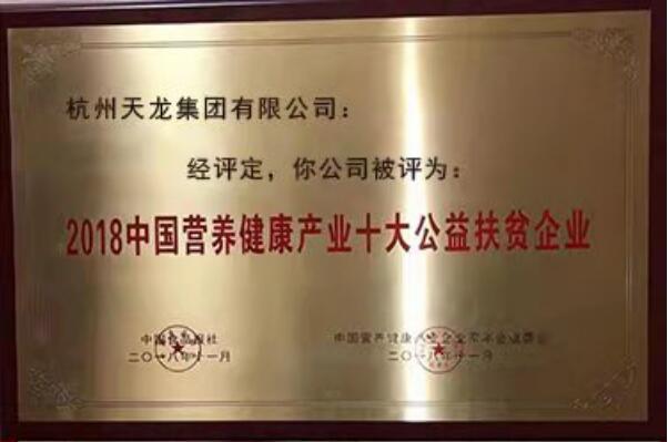 杭州天龙集团作为营养健康行业的先行者和成功实践者,为行业发展做出突出贡献,在本次活动的颁奖典礼上被颁发2018中国营养健康产业杰出企业、十大公益扶贫企业、科技进步三项大奖,彰显了企业的竞争力和产业未来的发展方向。